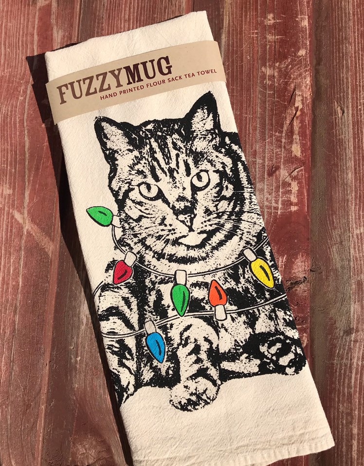 Big, sweet Tabby decked out in lights! This adorable Kitty just wants you to smile. Great for drying glassware or hands - practical and cute. Each colored light has been hand tinted so this guy really pops. These are a brand new, limited edition print so don’t miss out!