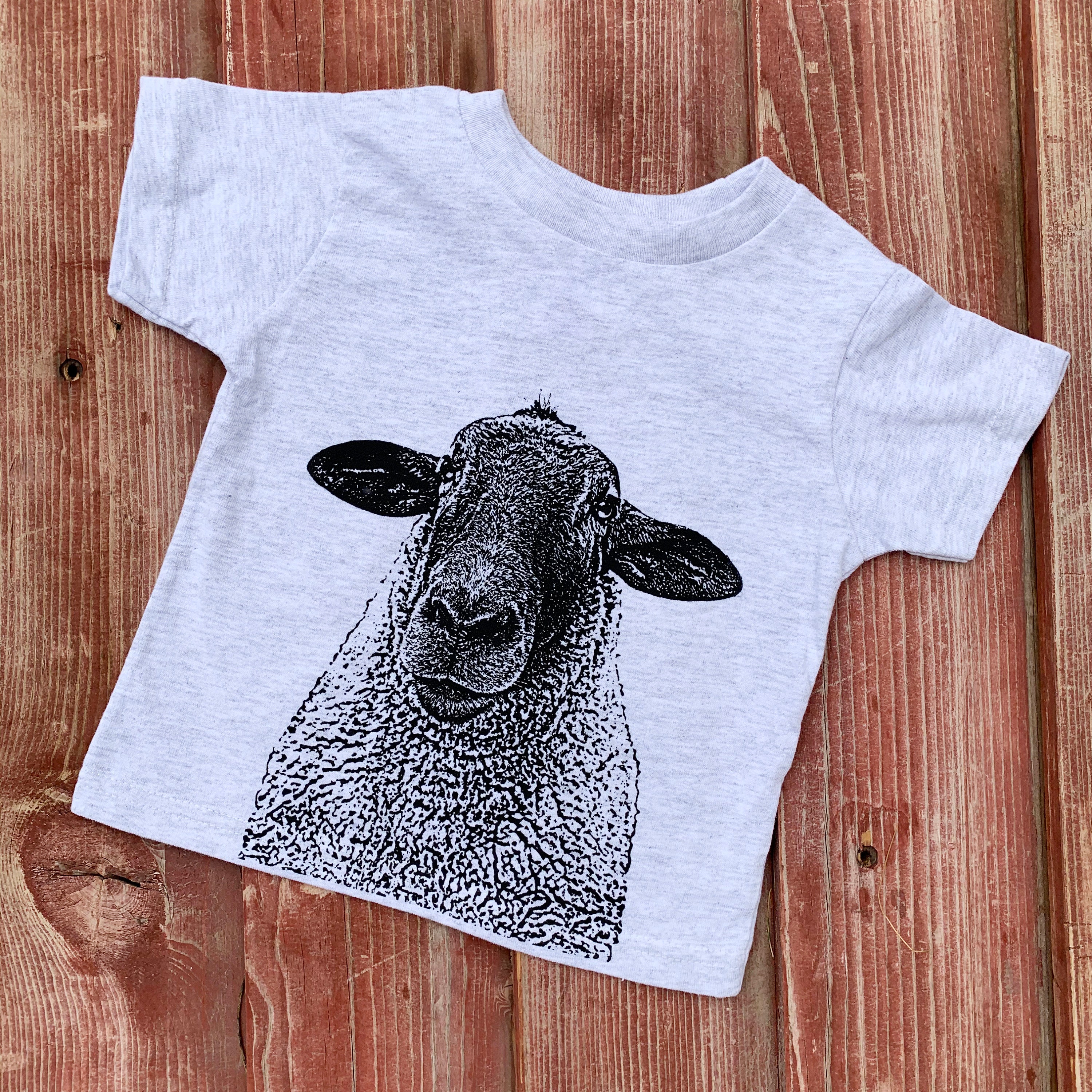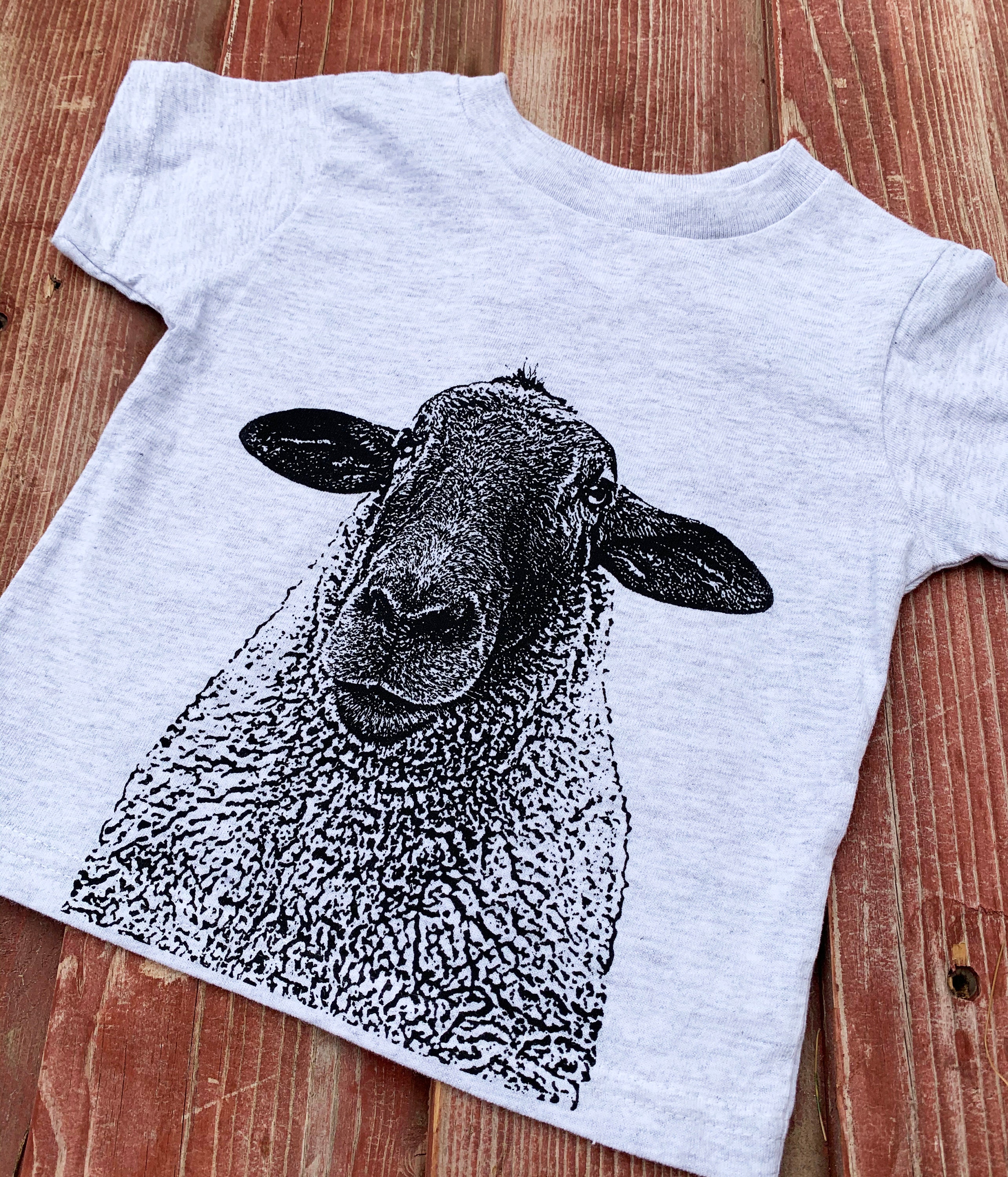 Screen printed by hand with loads of love and attention to detail, your sheep Tshirt will make all the other kids in the play group way jealous.