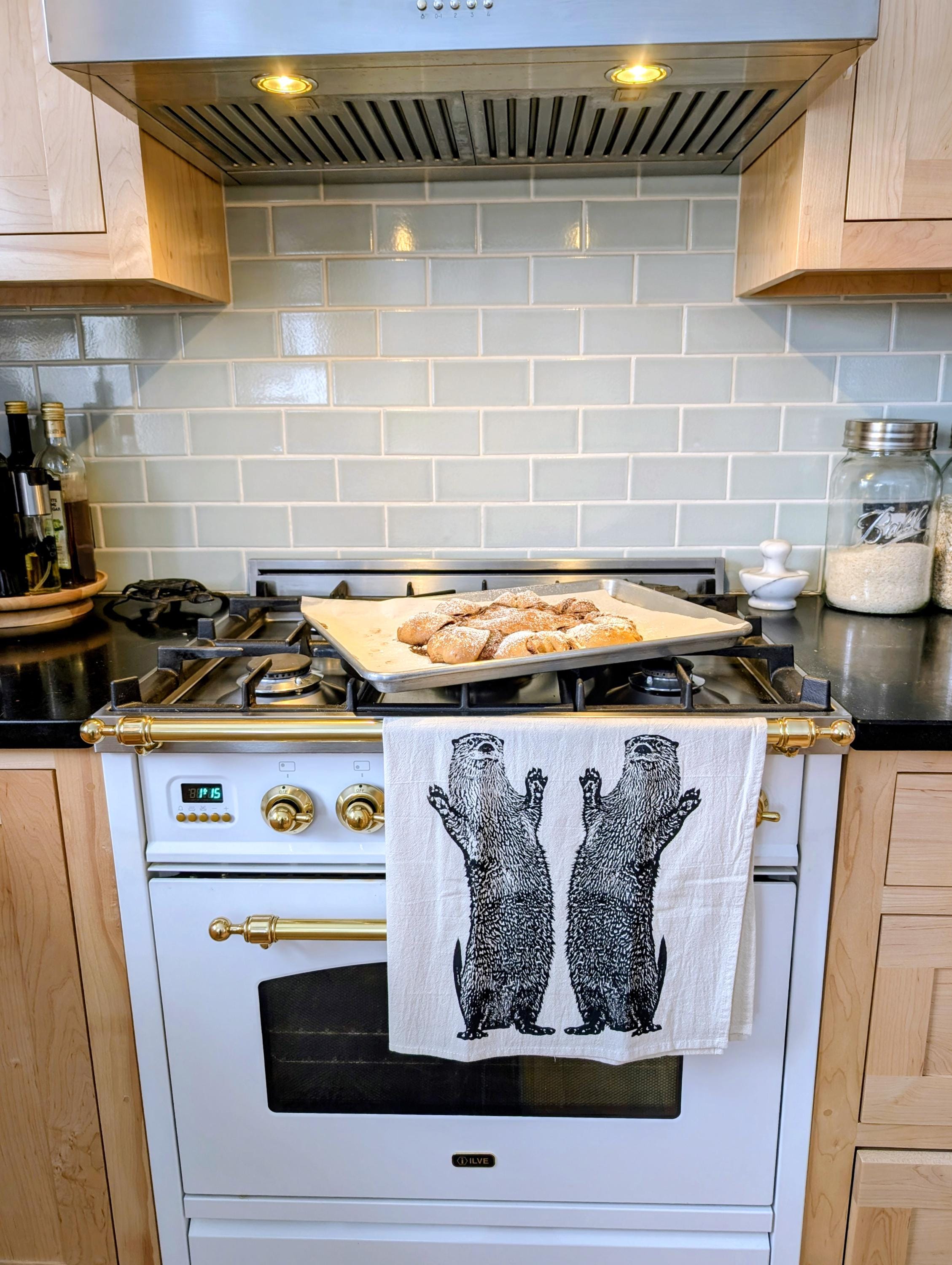 I loooove the dancing otters! Our home has a nature and wildlife theme. I am a hobbyist wildlife photographer and I love all creatures. We have otters in our backyard. What a fun addition to our kitchen.